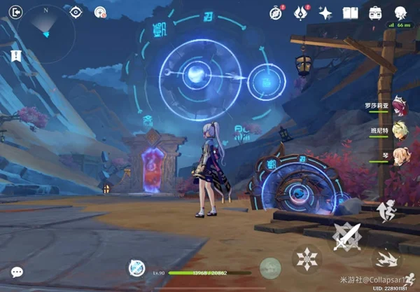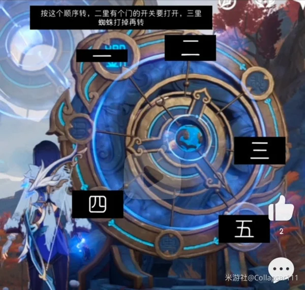 进入第四个空间,对话结束以后,逆时针转动一次罗盘,如图所示