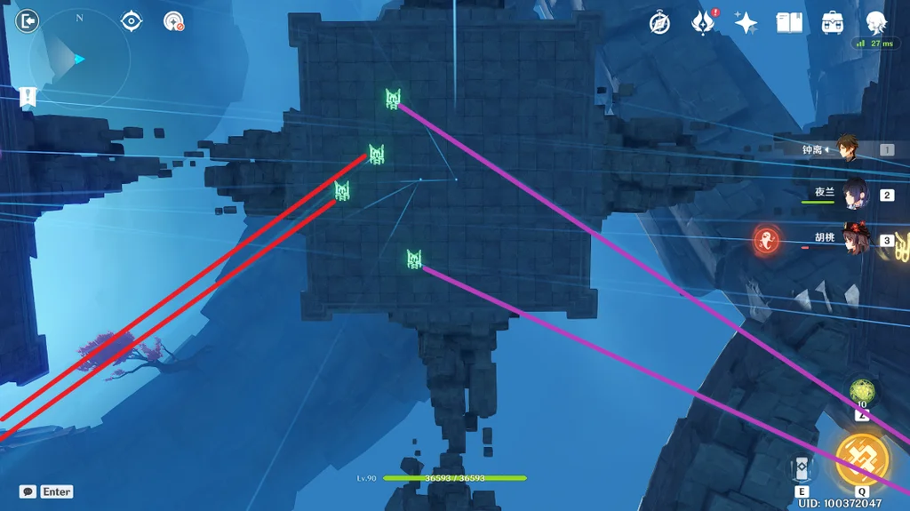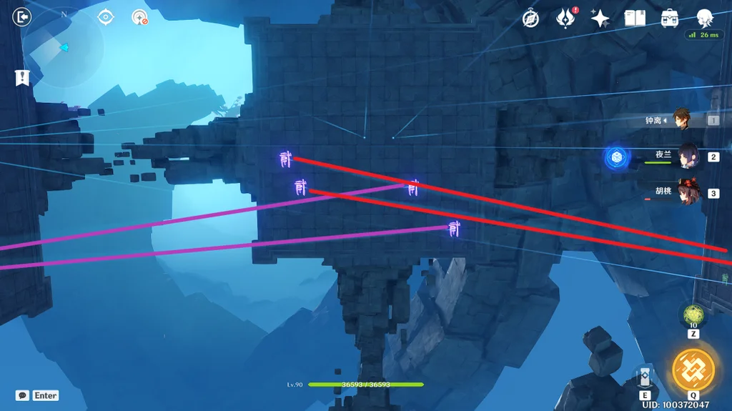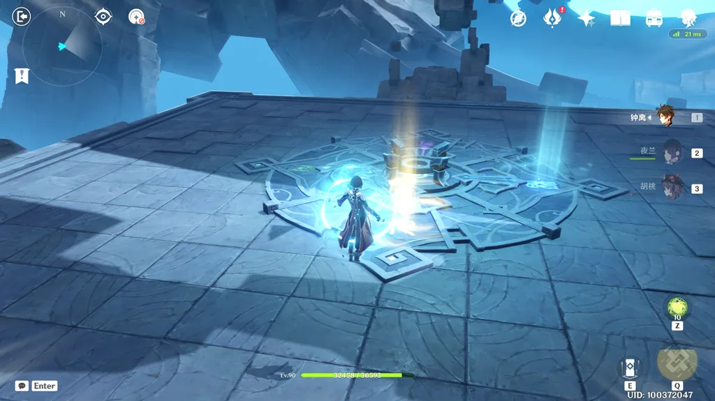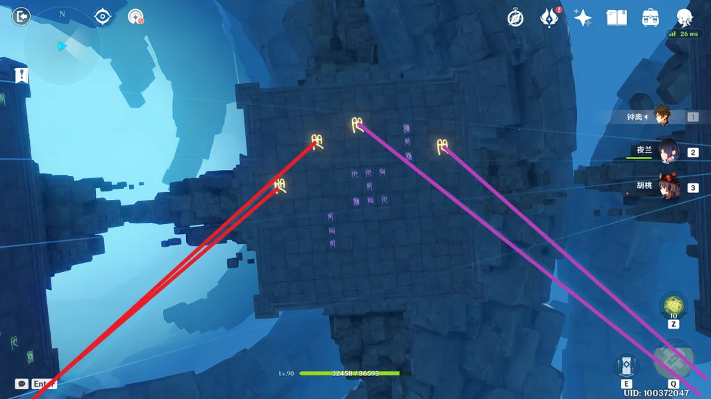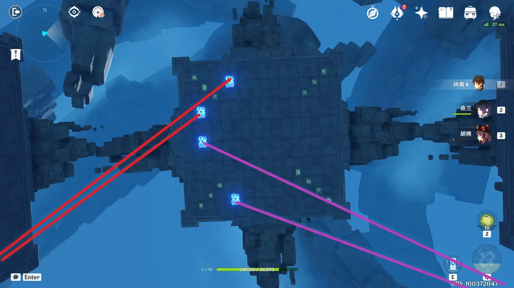 (2)那么如何点亮光符呢,在平台上,四个光符分别对应了四个传送装置(蓝色旋涡)