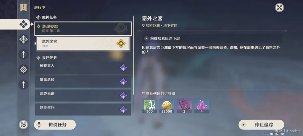 激活条件:完成任务危途疑踪问章 第二章意外之客和岩下秘境的前置对话