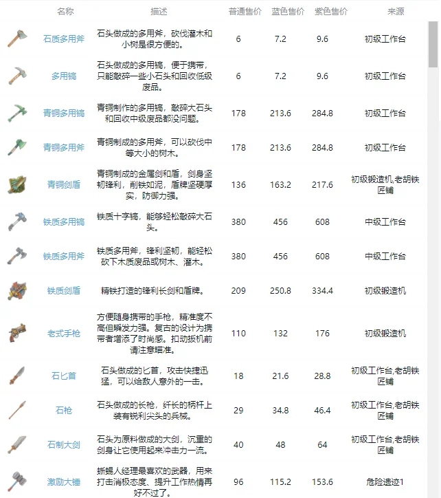 沙石镇时光中工具和武器有许多,部分玩家可能还不了解怎么获得,下面一起来看看沙石镇时光全武器、工具图鉴吧。