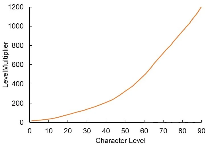 伤害提升 = 等级变量(参考上方图表,Y轴数值随着等级提升) × [1+(5 × 元素精通)/(元素精通 + 1200)]