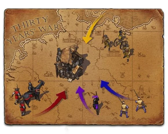 战争开始于1618年,当时费迪南德二世被废黜为国王波希米亚取而代之的是法尔茨的弗雷德里克五世。虽然波希米亚起义很快被镇压,但战斗扩大到了法尔茨荷兰共和国而西班牙则卷入了八十年战争。因为像丹麦克里斯蒂安四世这样野心勃勃的外部统治者古斯塔夫斯·阿道夫斯的瑞典同时也拥有帝国内部的领土,开始时的内部王朝纷争变成了更具破坏性的欧洲冲突。