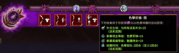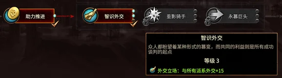 恶魔亲王的奸奇系技能后面有个全派系外交+15,需要3个技能点
