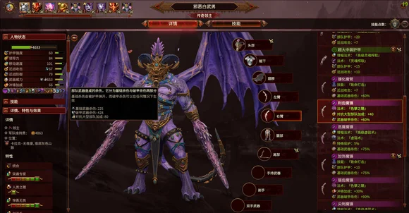 身体部件方面,色孽线左右手各有一个+40反大的爪子,两者都装上能获得累计80的反大加成以及很高的破甲杀伤,用来挠怪步和其他大型部队效率极高,魔法方面也能兼顾,打硬仗时换上,打完再切回套装享受维护费和外交等战略加成
