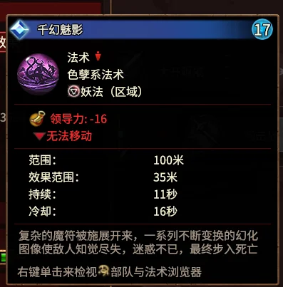 千幻魅影这个色孽系魔法大招高消耗低持续时间,只有在伏击战才能充分发挥,往敌军骑兵战车等高机动部队扎堆处来一发,或者往神尊欲魔打架的地方来一发,尽快歼灭敌方机动部队和触发魂之味