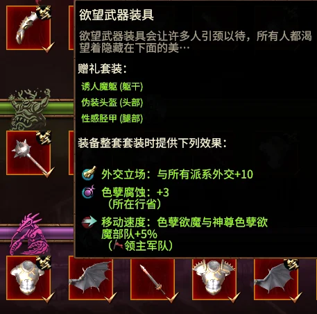 色孽系亲王的低级套装,3件给全派系外交+10,后期可以换掉