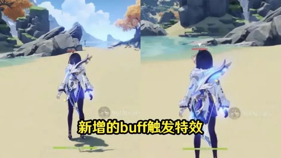 2.7版本若水弓的武器特性是:周围一定范围内存在魔物时角色造成的伤害获得提升。或许是为了让玩家更好地把控这个距离,新增了一个发光效果,特性被触发时会有淡蓝色光晕环绕武器。