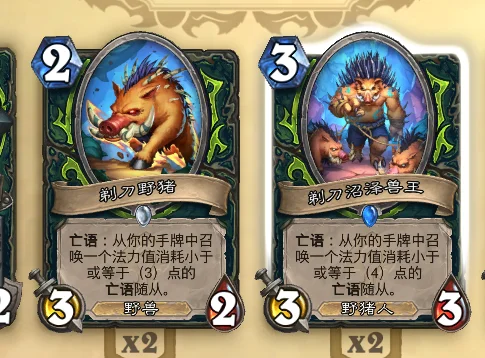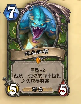 这两个家伙就厉害了,实际上我们卡组里存在一个亡语野兽体系,鲨鱼是亡语野兽,大量巨型包括本家都是野兽,可以享受到减费甚至被拉出,节奏极佳