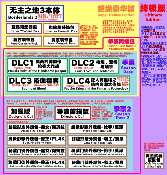 无主3的完整版本为【终极版】。如果你需要从本体补充到完整版本,即使不考虑纯外观皮肤、不实用的特典等,那么仍需要补充购买【季票1】和【季票2】,或者直接【季票同捆包】(等于前面两个之和)。