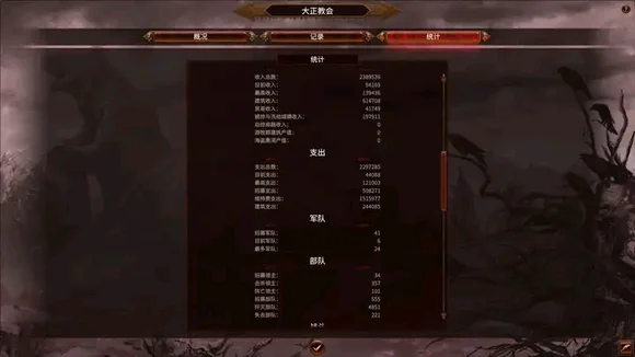 经济上,楼主税收只占收入的27%。55%以上的收入都是靠战斗获取,军队维护费保持在回合金的2倍以上,从8回合往后经济就是负。初始省全部升级到了2本,为了前期牧首容量(如果你愿意刷女巫+1牧首容量特性的话只需要1个2本就行)。其他的城都不升本。建筑只建造2个经济建筑,全部都是1级,因为1级是10回合回本,还是不错。