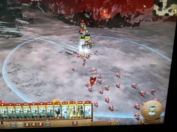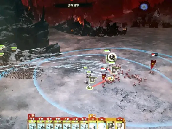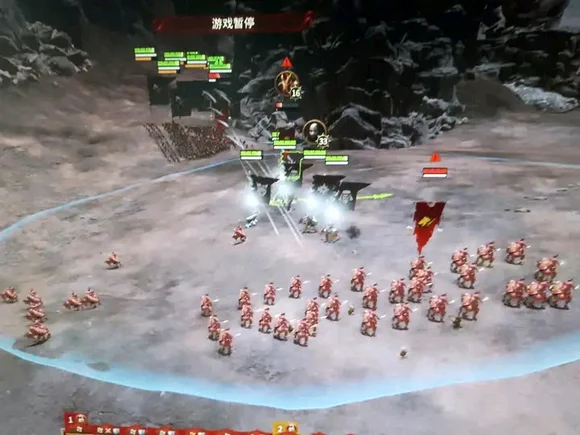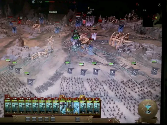 野战篇,这里刚刚好打的是恐虐,在20+回合我的装备还没成型的时候,弓手只有7队。野战弓手守狭小地形其次是守脚,领主和事务官去拉对面高速单位过来。如图,第一波怒妖狗拉出来,弓手集火秒了。随后拉斯卡过来,通过弓箭集火秒了。然后是对面刚牛,还是事务官和领主抗线。放血鬼和混沌勇士最后到场,直接被凛冬之心清理完毕。---如果你的弓手多的话可以前后梯次排列,全部开防御模式。当你被切了之后后排弓手还是可以输出。