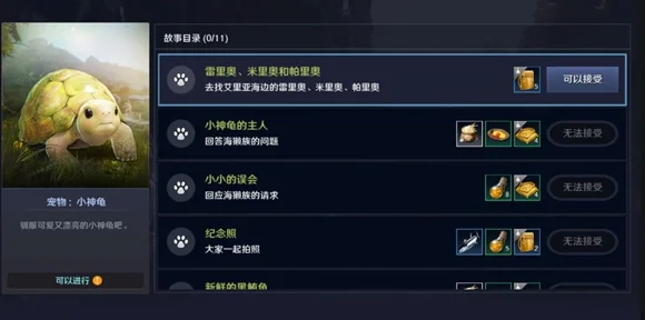跟随任务指引,与海獭族和商人杜塔普对话,很快即可获得可爱的小神龟。