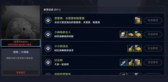 完成“喜欢小神龟的孩子”任务,可获得图鉴物品“喜欢小神龟的孩子初稿”