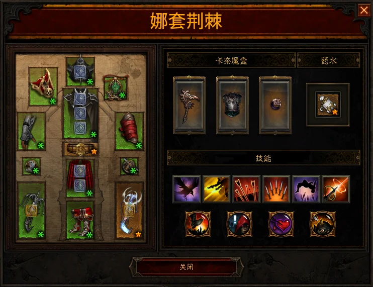 猎魔人并没有直接与荆棘相关的装备或套装,因此核心装备只能是: