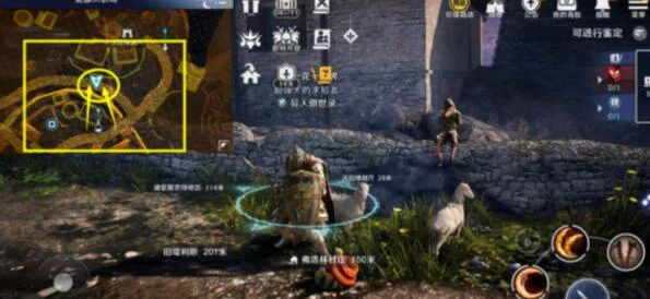 4、少年在外围的一圈石墙上,可以通过左上角的小地图来找到大致位置。