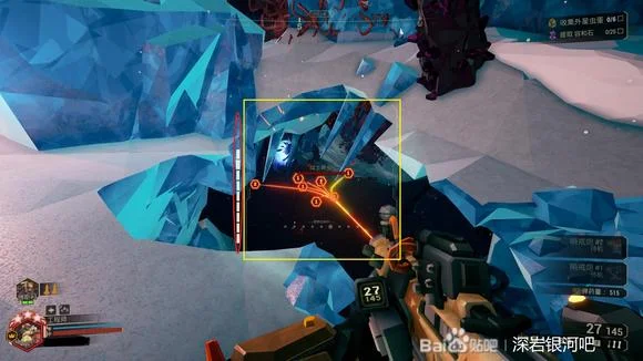 瞄准框左侧红色圆圈内的东西是锁定层数进度条,随着按住鼠标左键时间的增长,进度条会逐渐涨满。我目前加点下,最大锁定层数为12,上图中我目前锁定了9层,松开鼠标后,就会射出9发子弹。可以看到我瞄准框内出现了几条线,分别连接着几个虫子,这代表了我锁定这些虫子,每个我锁定的虫子身上有数字,数字之和是9,和我目前锁定的层数相等,这时我松开左键开火后,这9发子弹会根据虫子身上的数字进行分配。有个特殊情况,我单发子弹伤害是21,蜂拥的血量是13.5,如果我锁定了一个蜂拥12层,松开左键开火后,实际只会打出1发子弹,因为1发子弹足够杀死一个蜂拥。