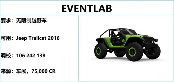 第一张EVENTLAB图上了台Jeep 硬派越野车,有点滑但不影响单人跑比赛