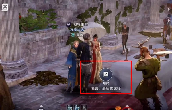 4、然后在贵族宴会厅的附近就可以找到名誉、最后的选择知识了;