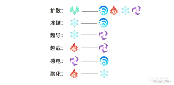 ps:这里只例出了与本次成就相关的元素反应!为了避免增加阅读难度,所以这里就不科普元素反应机制了!