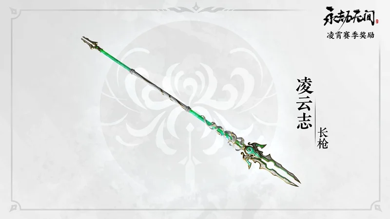 永劫无间凌云志长枪皮肤外观可以见上图,凌云志是凌霄赛季的段位奖励,达到铂金段位以上的玩家可以在赛季结束的时候获得这款皮肤。