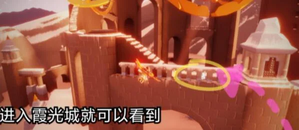 2、玩家可以通过溜冰场左侧的大门进入霞光城,从正前方高墙那里就能看到先祖。