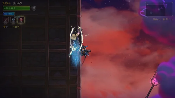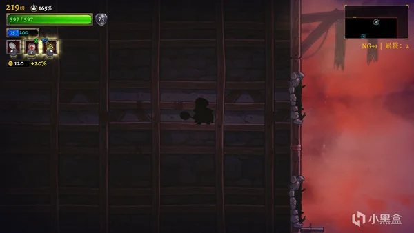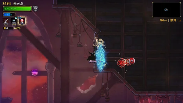 从隐藏通道一直往右走,通过外面的刺轮陷阱回旋踢到达高处并对第二个隐藏墙放技能,即可找到隐藏房间。
