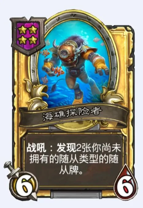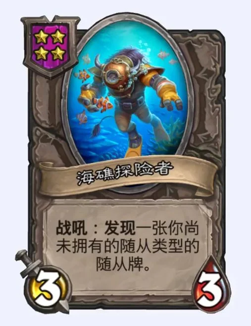 海礁探险者 4星3/3 战吼:发现一张你尚未拥有的随从类型的随从牌。