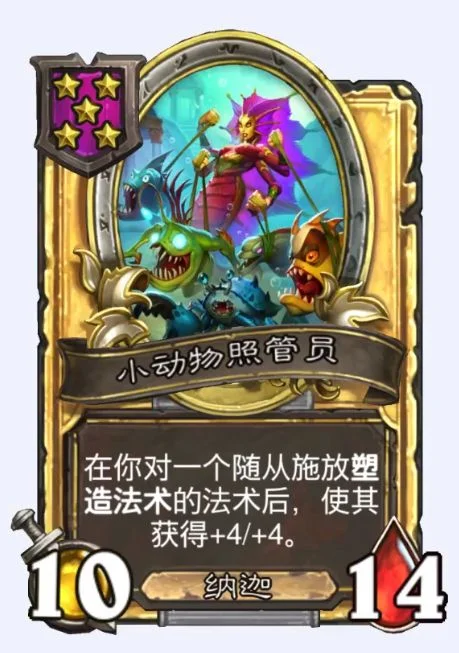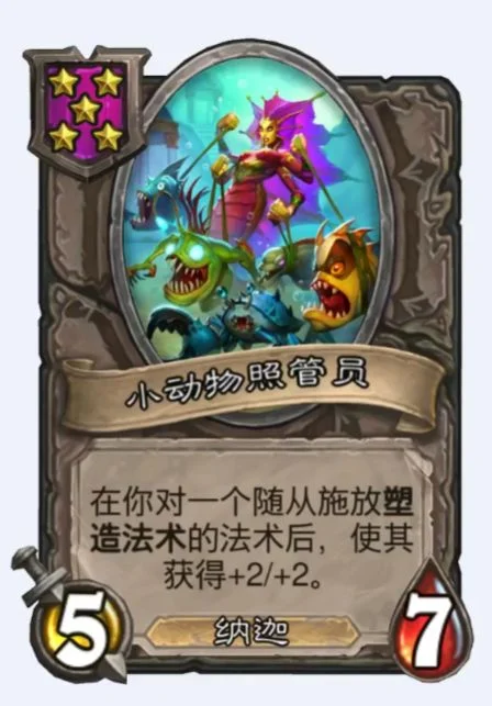 小动物照管员 5星5/7 纳迦 在你对一个随从施放塑造法术的法术后,使其获得+2/+2。
