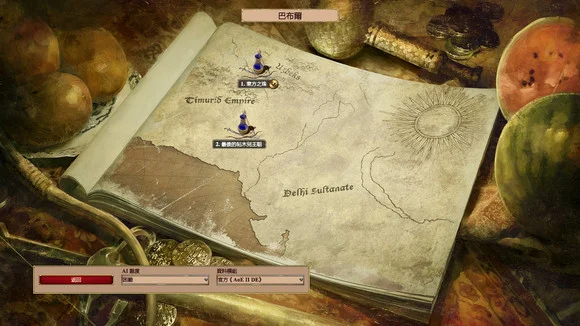 3) 地图最下方的塔尔海是帖木儿贵族(灰色)之一,给他十匹白马,他就变成盟友(黄色)帮你攻打红色和青色,起初很不给力,后期会成为你的重要协助力量。
