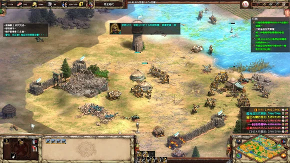 7) 把大军开到乌兹别克人面前的时候,卧槽?乌央乌央一片又一片的敌军蜂拥而至,爆兵和不要钱似的。集结点设置好,狂造重装骑射和怯薛/或精锐草枪,顶着大军往前压。顺便造点中冲拆建筑。