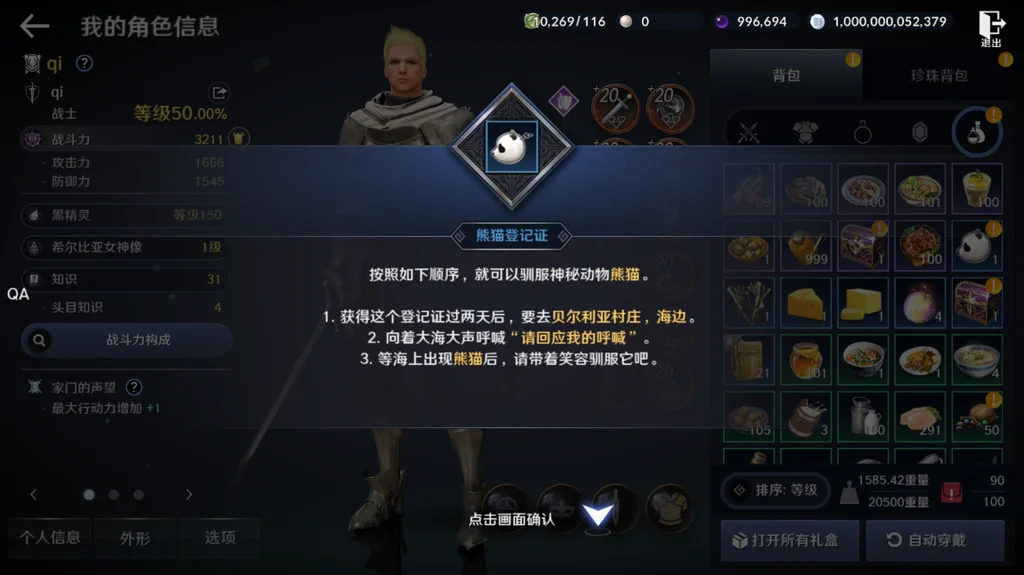 跟随任务指引到达【贝尔利亚】海边寻找【阿贝尔琳】,将熊猫登记证交给他后,获得一个【假冒熊猫登记证】,继续跟随指引寻找【马蒂亚斯】