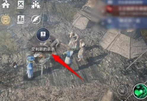 3、来到这个位置后,找到木板上面的几个人,就可以获得知识:【艾利恩的意志】。