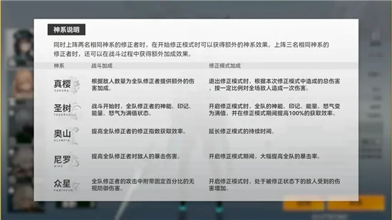 尼罗神系加成是,三尼罗提高全队修正者对敌人的暴击伤害,修正模式下大幅度提高全队的暴击率。