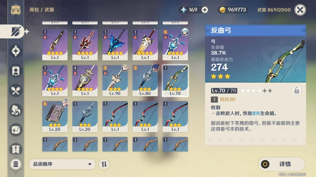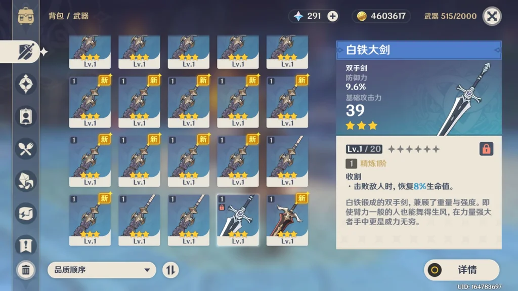 飞天大御剑:雷泽优菈均可拿来过渡,同时也是一把绝版大剑。