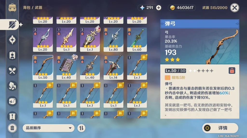 弹弓:甘雨、安柏、菲谢尔、达达利亚可在萌新期过渡使用。