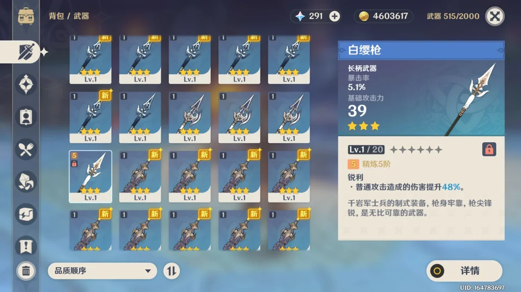 精5黑缨枪:钟离、胡桃萌新期均可使用。钟离甚至可以用到关服。
