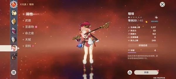 烟绯与凝光同为四星主c,她的优点相较于凝光来说,在于可以反应,她也有索敌功能,但比不上凝光的“导弹追踪”,不过作为一个四星主c,她的强度也是到位的,个人认为她的优点如下