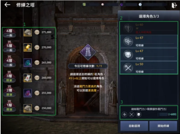 - 派遣同一职业进行修练之塔时,只能获得1次额外战斗力