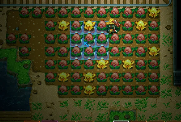 猩红锄头,极大增加了收获作物的工作效率。 为3X3的农业生产工具。