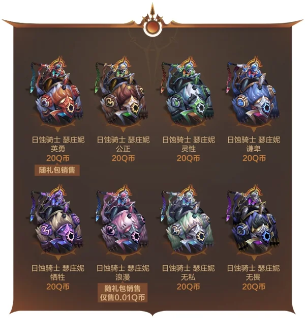 注意:2022年5月13日9:59后礼包不再包含【日蚀骑士 瑟庄妮 浪漫】,礼包价格变为:17520点券(含英雄价19270点券)