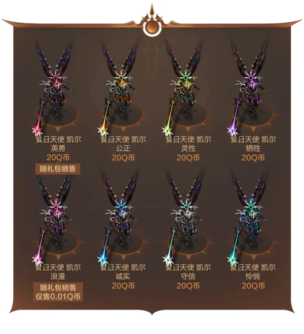 礼包包含:皮肤(8折)+7款炫彩(8折),【食日天使 凯尔 浪漫】仅售1点券