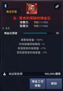 1、不同的炼金石的效果也不同,打不通的副本和战斗。