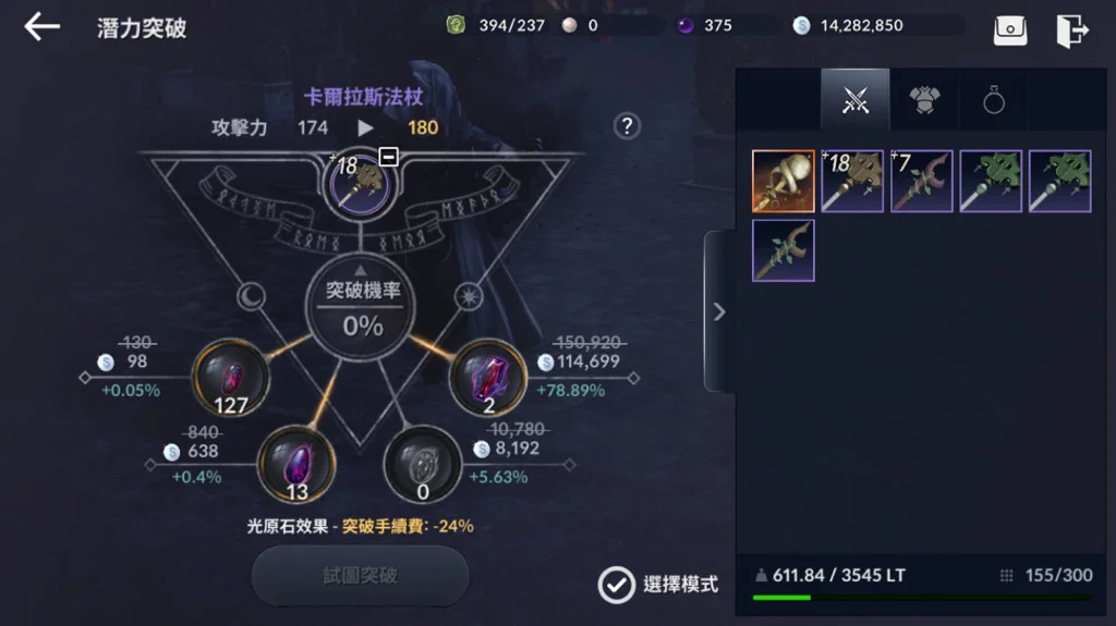 +18武器提升30%要75个中级黑石,以底价算一颗3500,75颗262500。