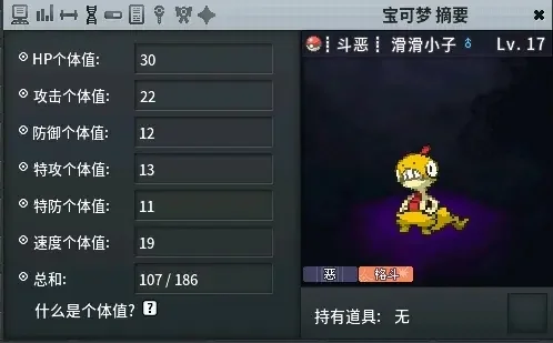 过完第一个道馆继续跟着剧情前进,会抵达地下水脉洞穴,在洞穴里可以抓一只石丸子(岩石系克制虫系),攻击力个体值最好高于25,比如这只