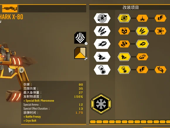 第一行选信息素,第二行可选普通箭弹药或者特殊箭弹药,27冰冻+12信息素或20冰冻+17信息素,最后一行点个持续时间