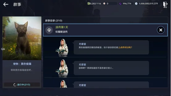 【德佩前哨站】NPC【尤碧亚】亲密度达到90可激活黑色瘦猫故事线(亲密度快速提升可通过交易所购买【鸡汤】或【牛排】或通过料理制作赠送NPC快速获得)