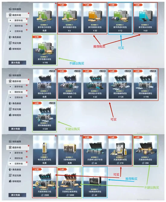 注:充值月卡获得的转移之花,非常推荐购买“等级物资礼包”。