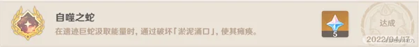 等到遗迹巨蛇汲取能量,屏幕上出现文字提醒时,让角色站在两个「淤泥涌口」的中间使用道具「流明石触媒」,就会提示获得成就「光之流溢」和成就「自噬之蛇」。