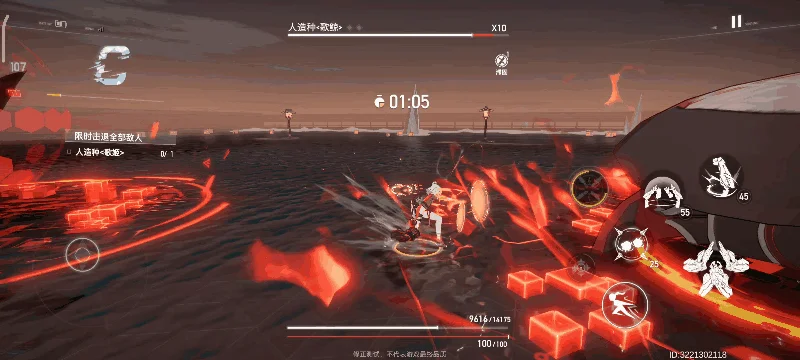 因为“护身盾”的原因,导致我们在不同状态时需要对不同部分进行攻击。一形态需要注意的问题在于“人”不停的释放声波,但一形态我们的主要攻击对象为“人”,因此攻击时需要我们频繁的闪避改变位置(容易红条)。二阶段时主要攻击为“鲸”,虽然二阶段的“鲸”威胁性小,但“人”的攻击更加频繁,范围也更大,因此注意人的动向即可。