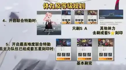 4、当开启联合特勤时:这里建议在没开启最高难度的联合特勤前,只刷S和A级的委托 ,多余体力仍然用于凑齐主力角色需要的五星刻印套装 。